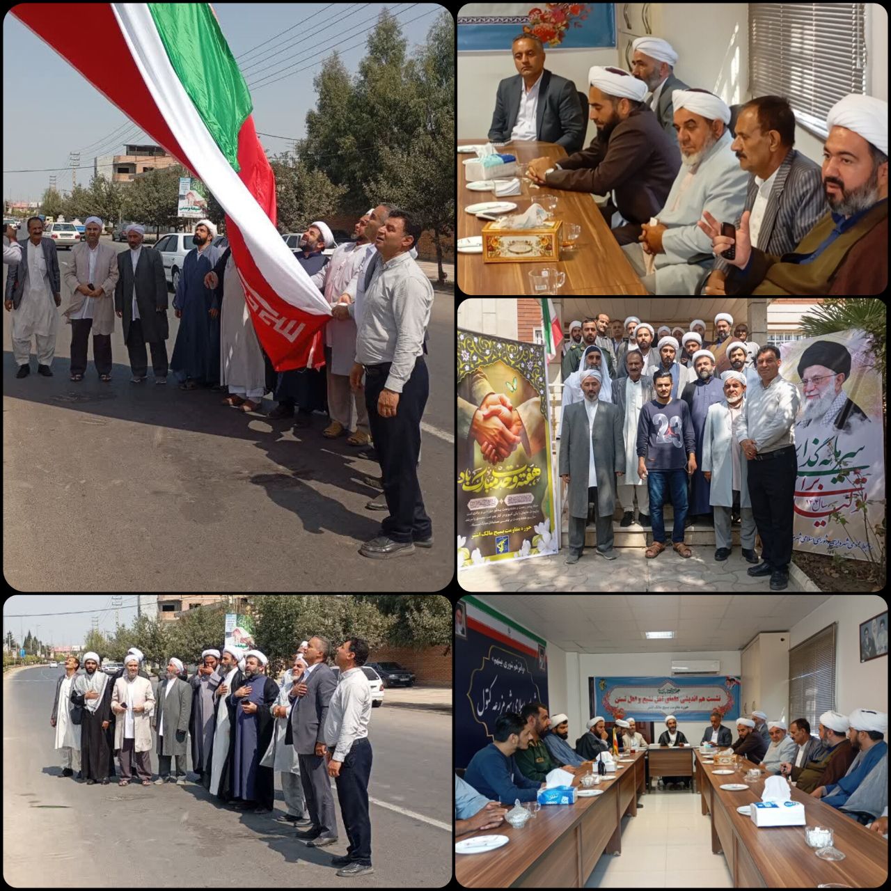 👈در پایان این گردهمایی، عالمان دو مذهب در کنار یکدیگر، زیر پرچم پرافتخار جمهوری اسلامی ایران ایستادند و با به اهتزاز درآوردن آن، نمادی از اتحاد، همدلی و پایبندی به ارزش‌های مشترک اسلامی و انقلابی را به نمایش گذاشتند.