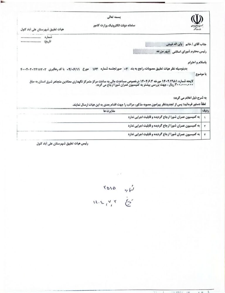 تعرفه عوارض و بهای خدمات ۱۴۰۵ به شهرداری ابلاغ شد